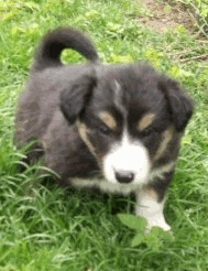| Uaines Welpen sind da, ein Mädchen und vier Jungs. |