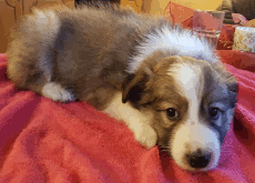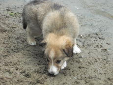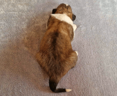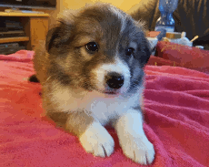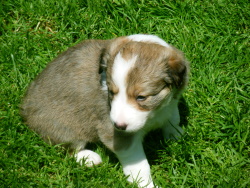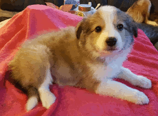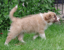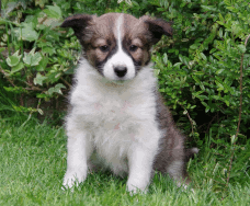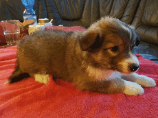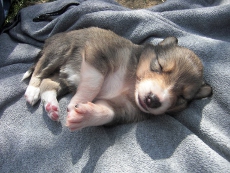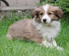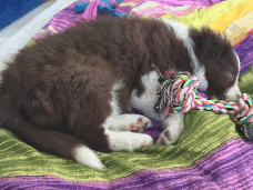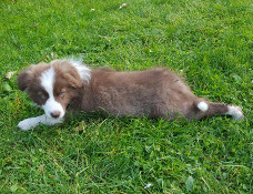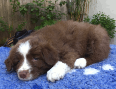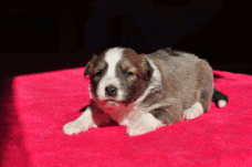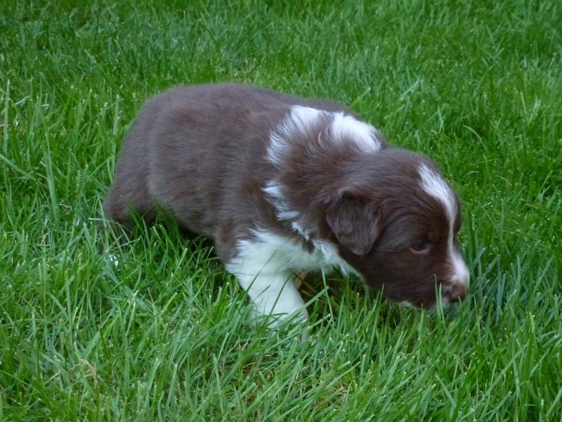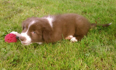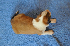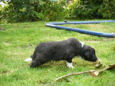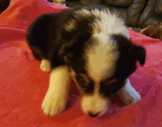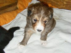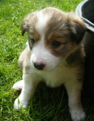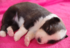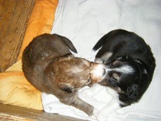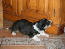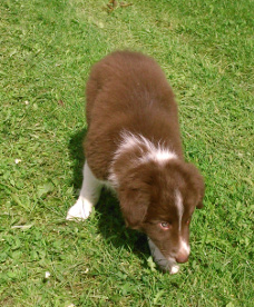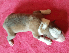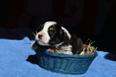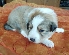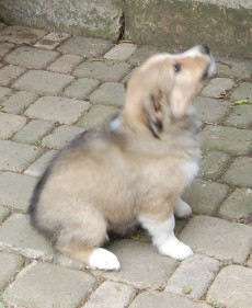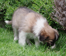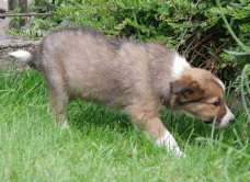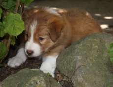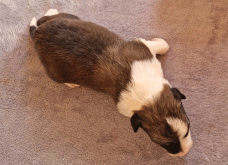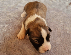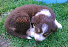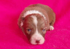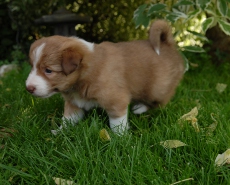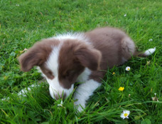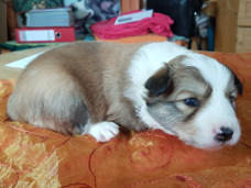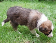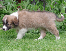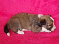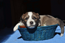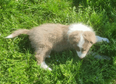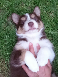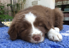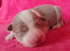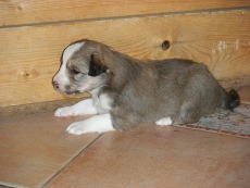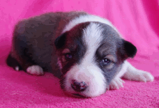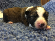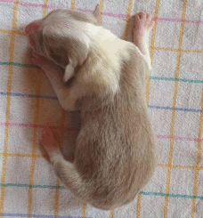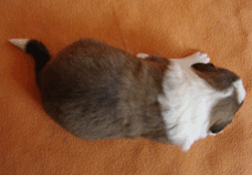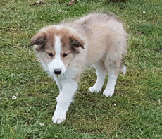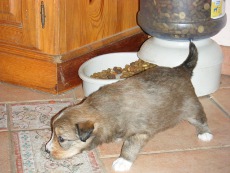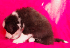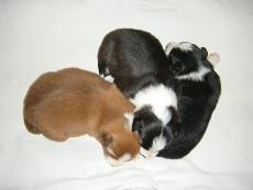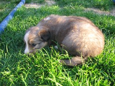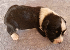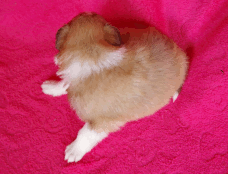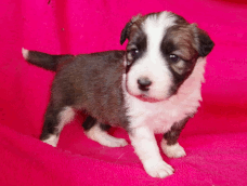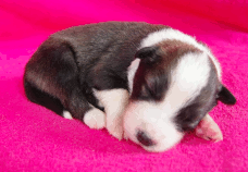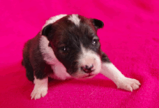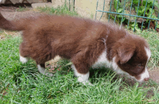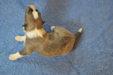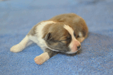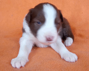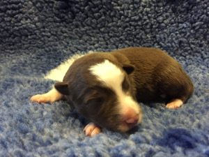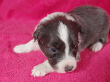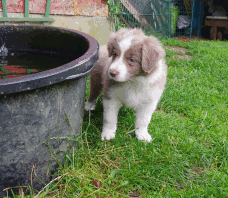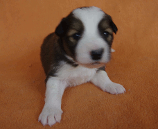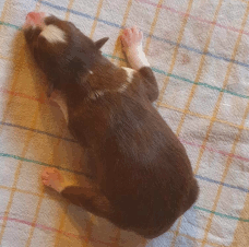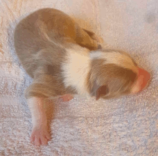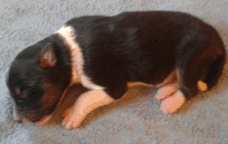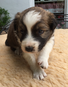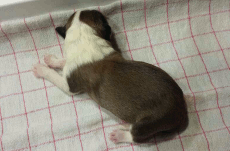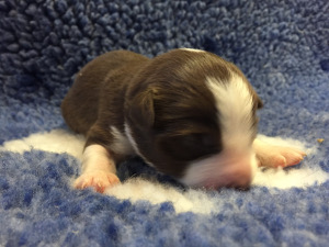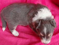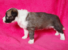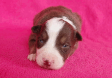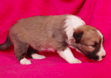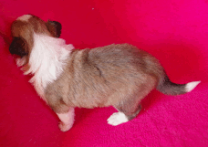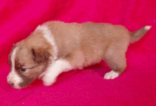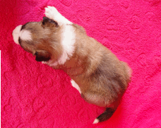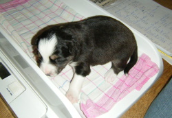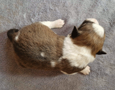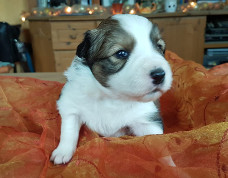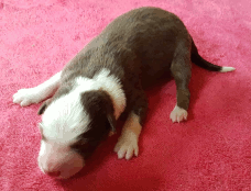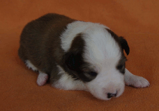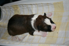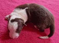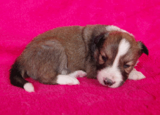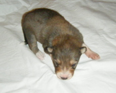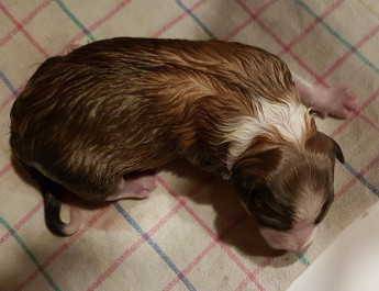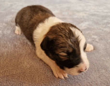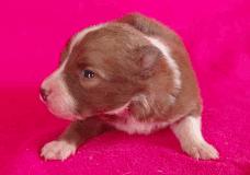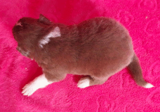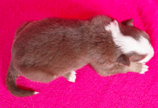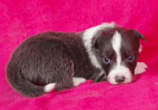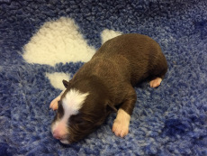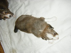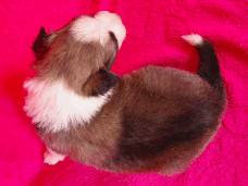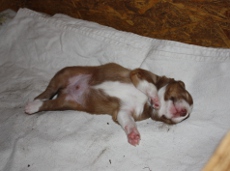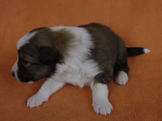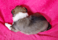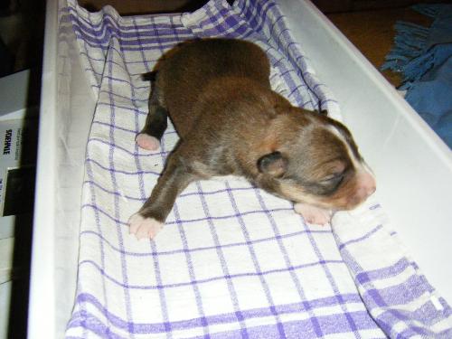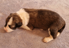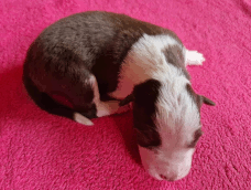 | Skye - Hündin, 270 gr, braun weiß, linke Schulter weiß, geboren um 13:49 Uhr. |