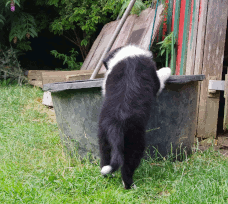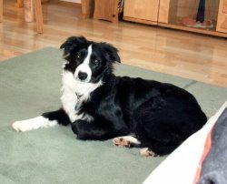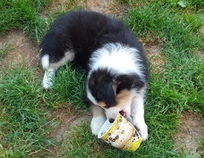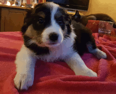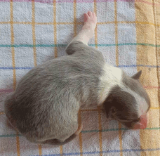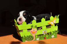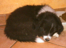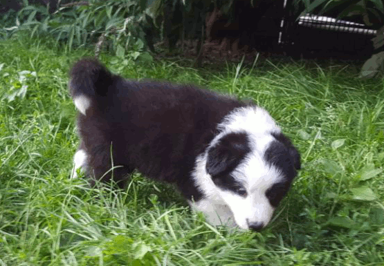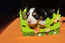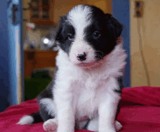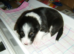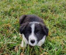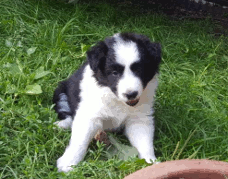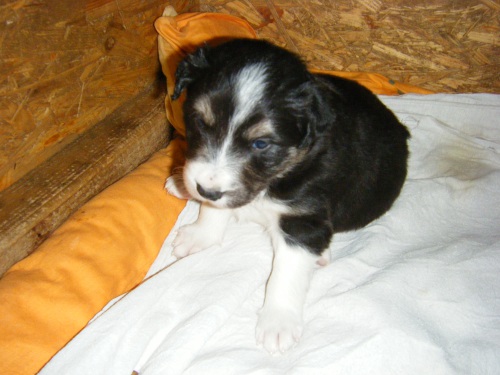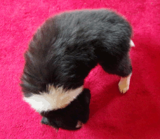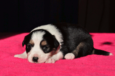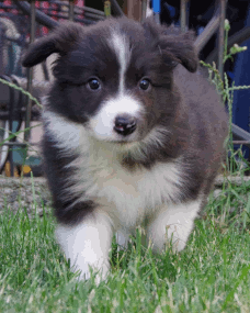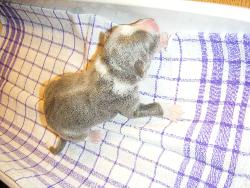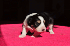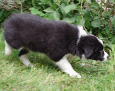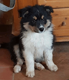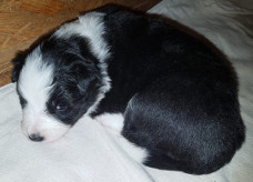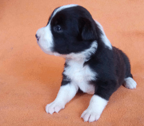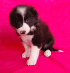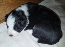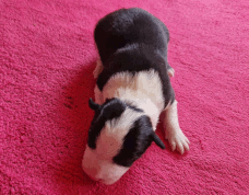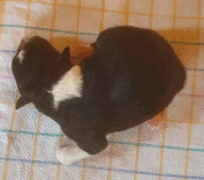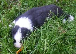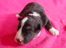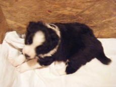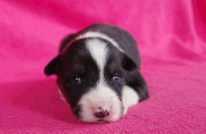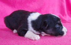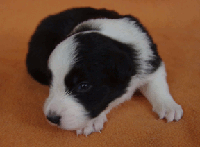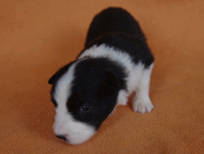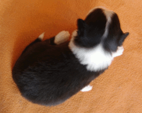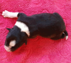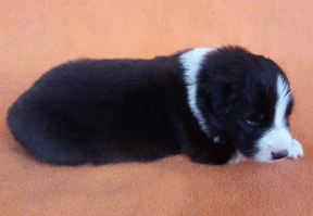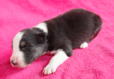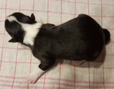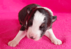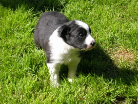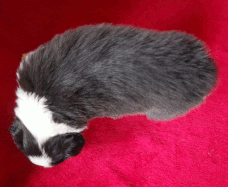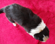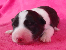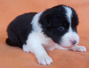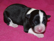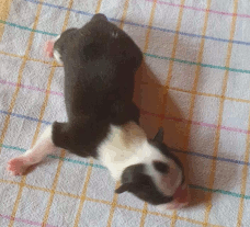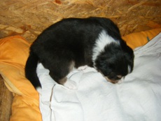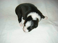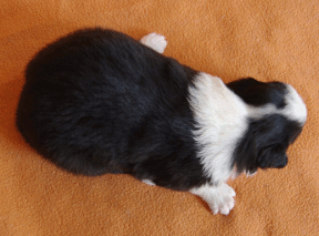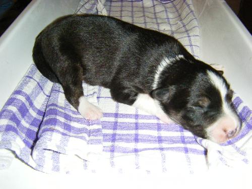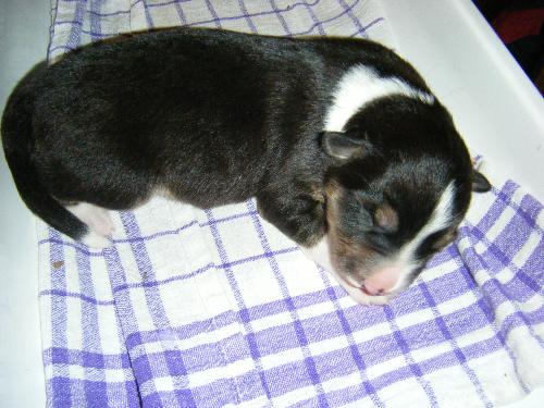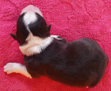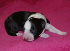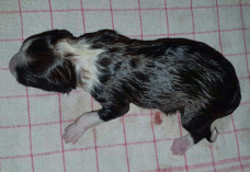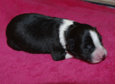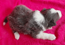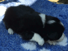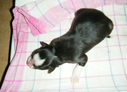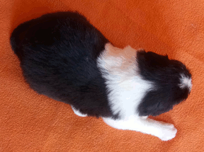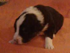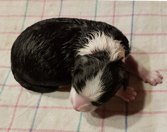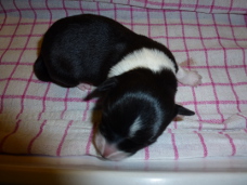 | Sid - Rüde, 360 gr, schwarz-weiß, rechts weiße Schulter, geboren um 10:34 Uhr. |