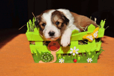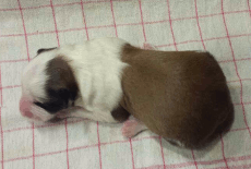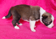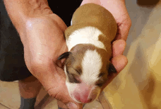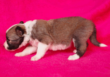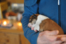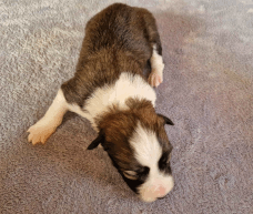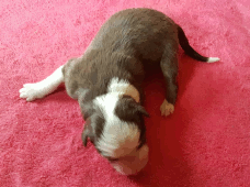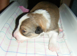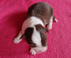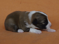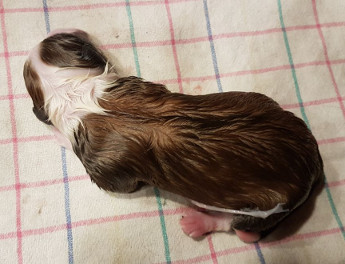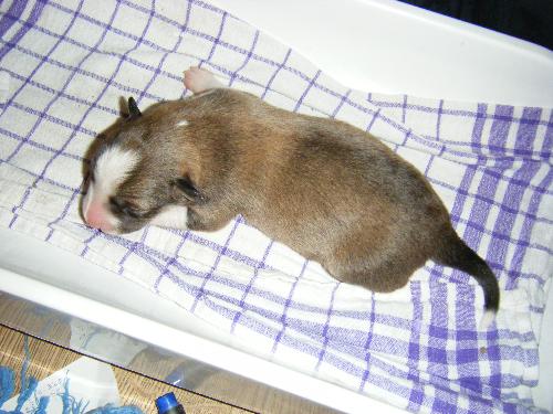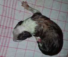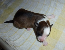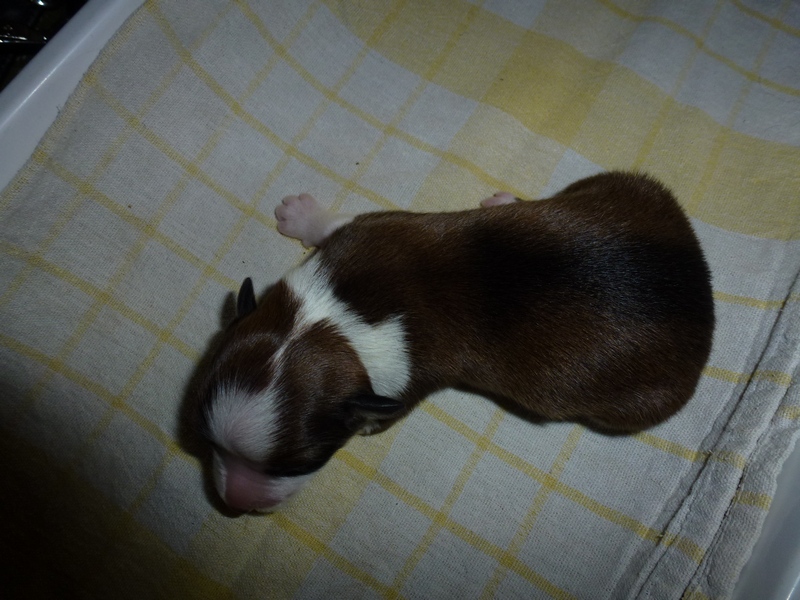 | Sasha - Rüde, 320 gr, braun-weiß, geboren um 10:49 Uhr. |