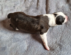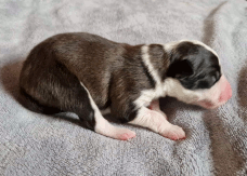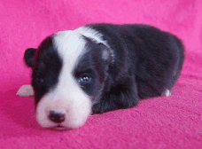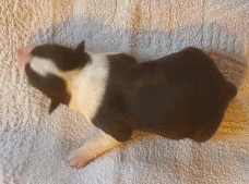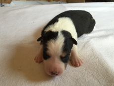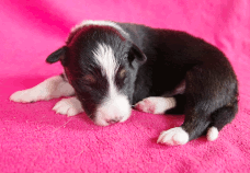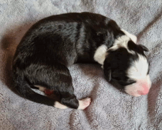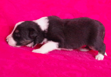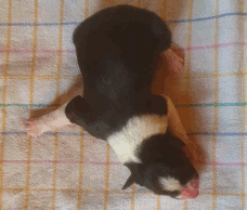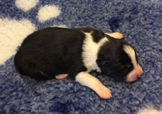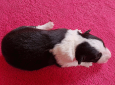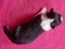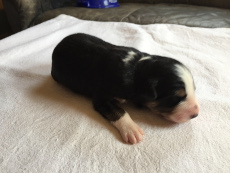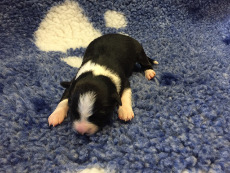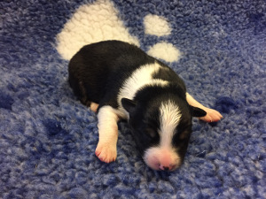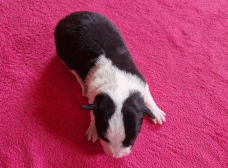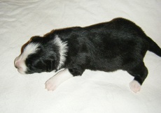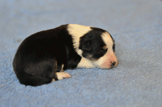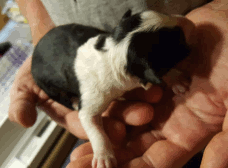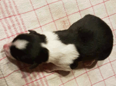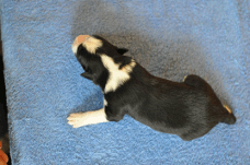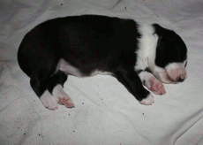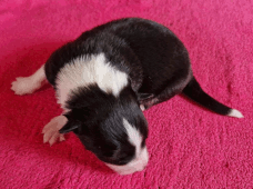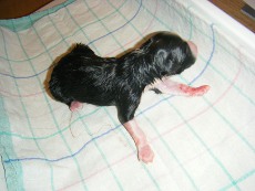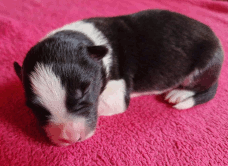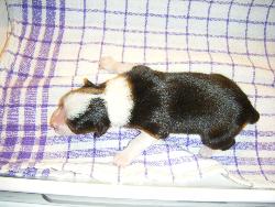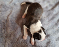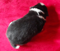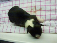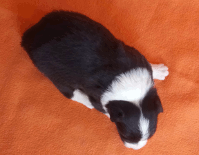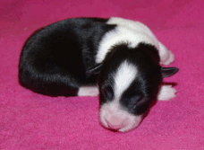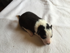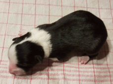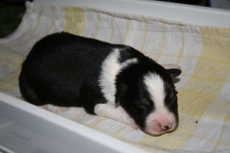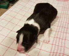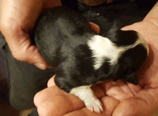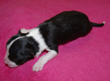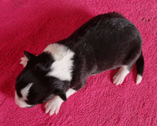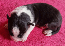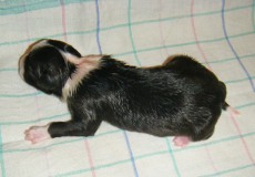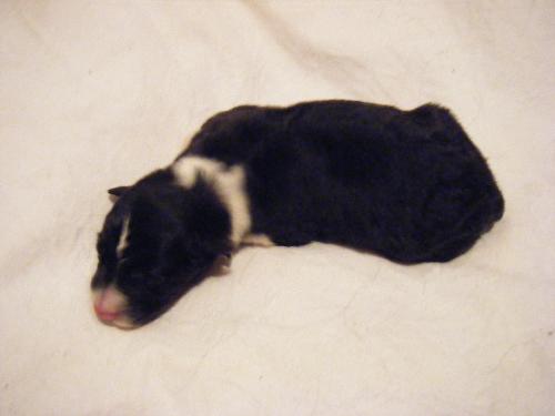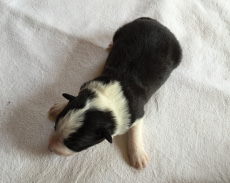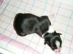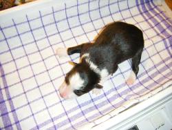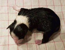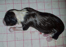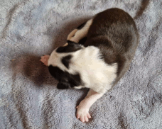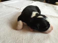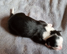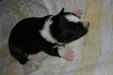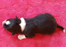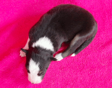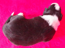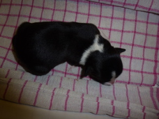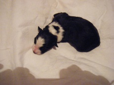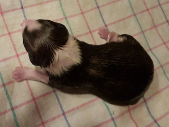 | Sloan - Rüde, 310 gr, schwarz-weiß, wenig weiß, geboren um 13:40 Uhr. |