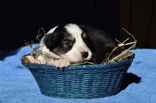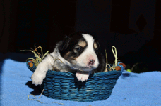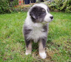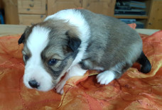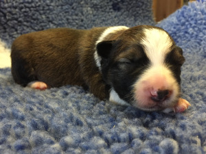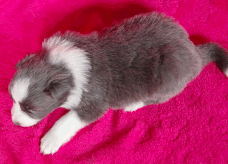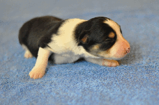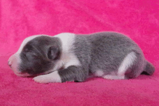 | Xciting Willi - Rüde, 320 gr, blau-weiß, Kragen links, kam um 6:15 Uhr zur Welt. |