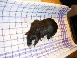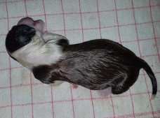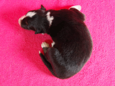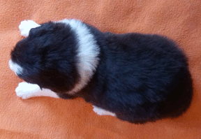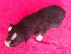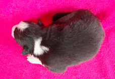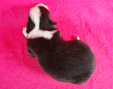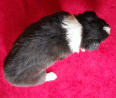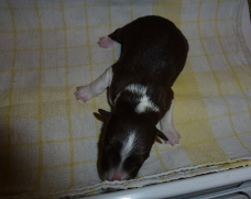 | Rusty - Rüde, 410 gr, schwarz, Blesse, kleiner Kragen mit schmalem Strich, kam um 8:00 Uhr zur Welt. |