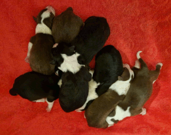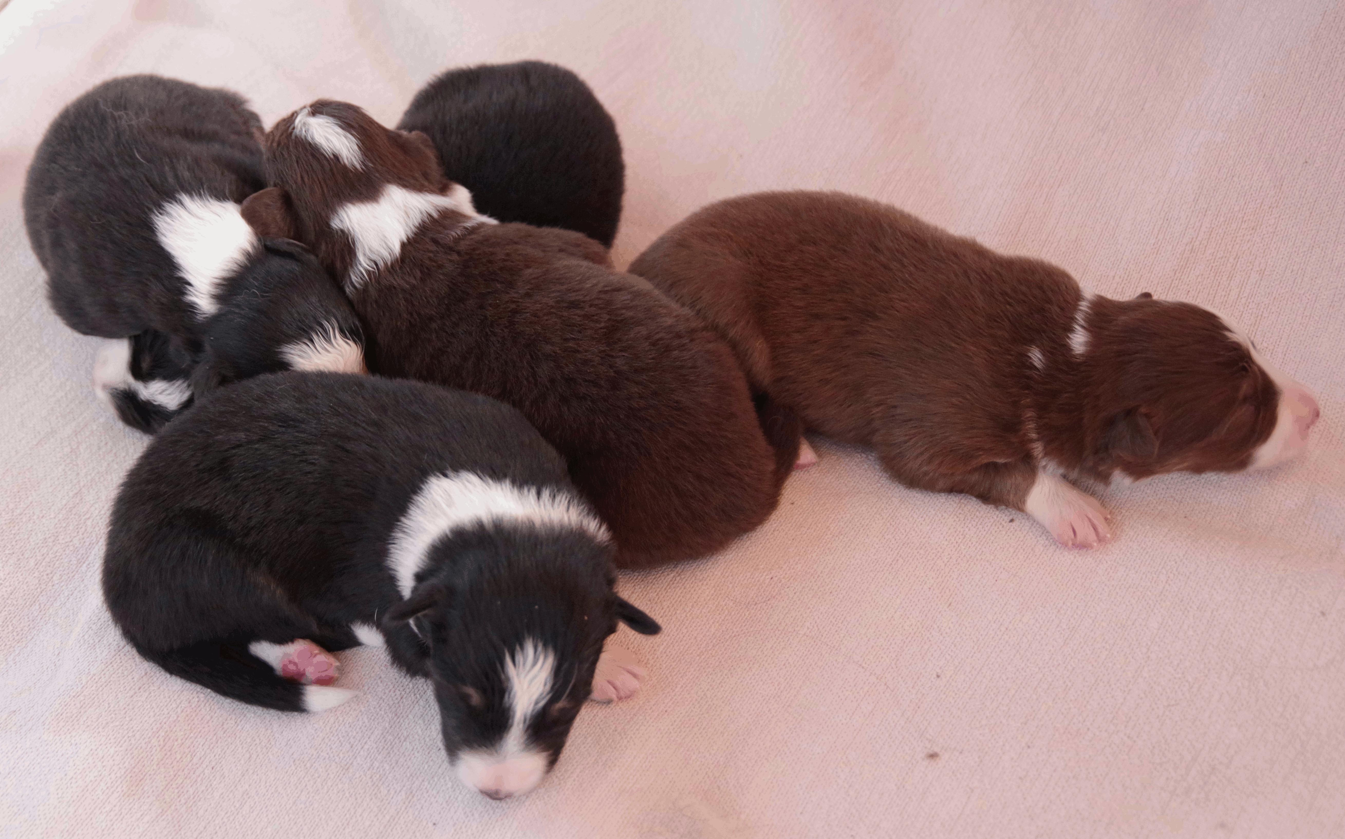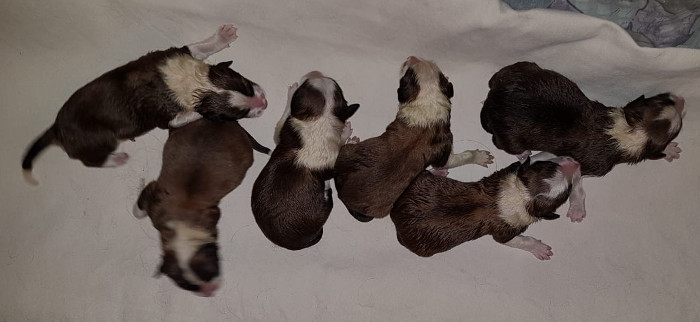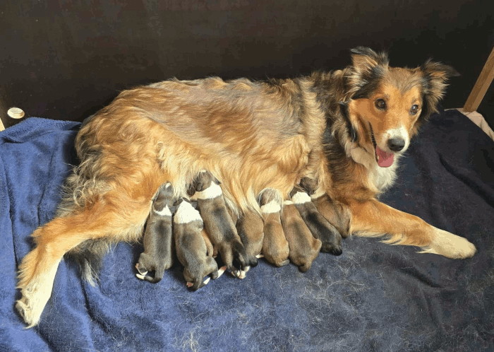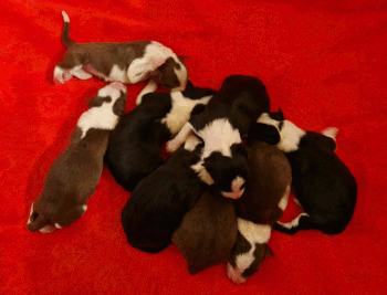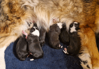 | Die Welpen von Amica kamen am 05.08.2024 auf die Welt. Es sind vier Jungs und zwei Mädels |