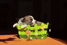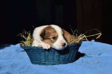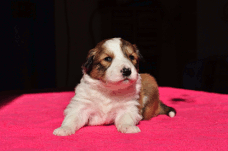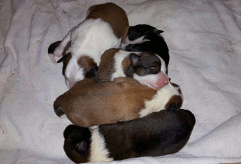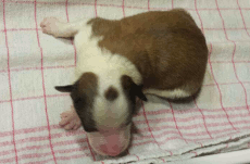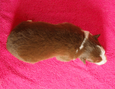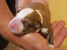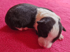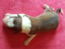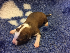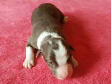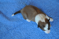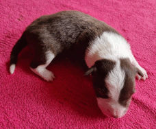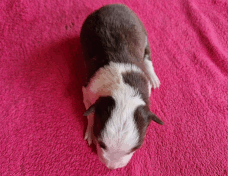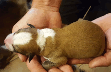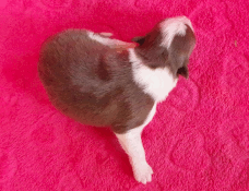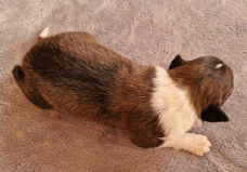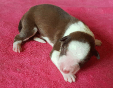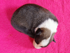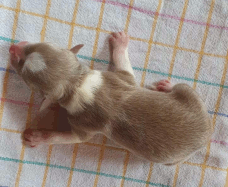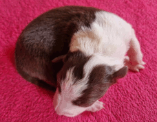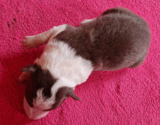 | Scarlett - Hündin, 280 gr, braun weiß, gleichmäßig gezeichnet, geboren um 14:30 Uhr. |