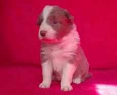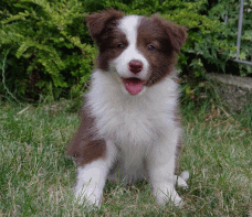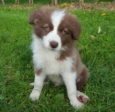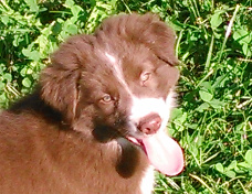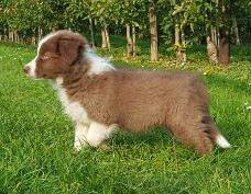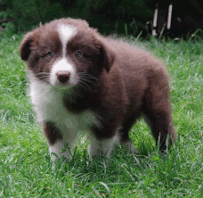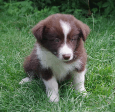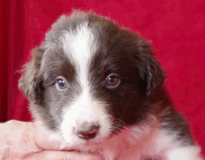 | Ruby - Hündin, 360 gr, braun, Blesse geht in Kragen über, Sie kam um 3:51 Uhr zur Welt. |