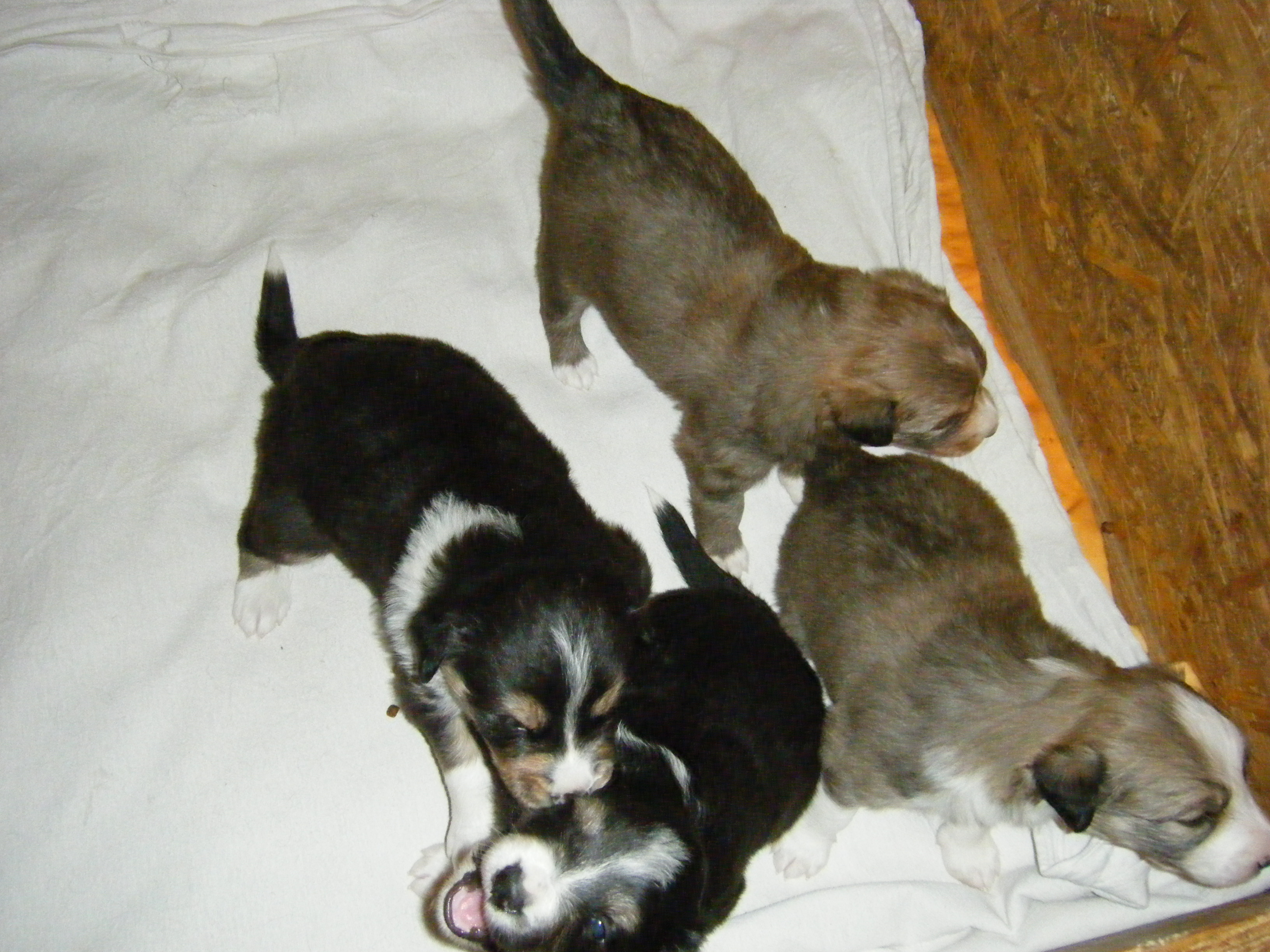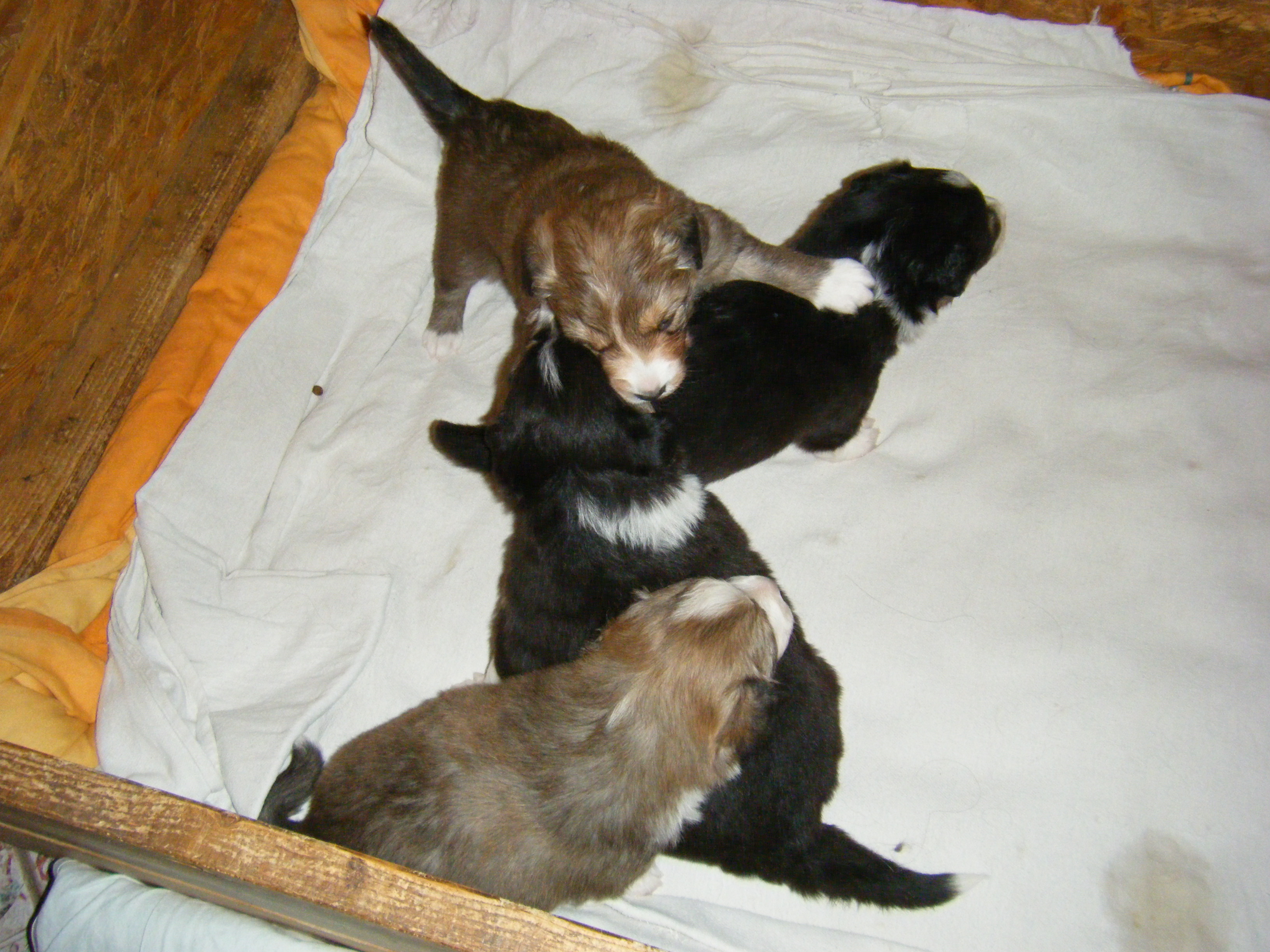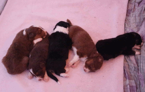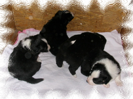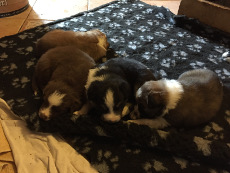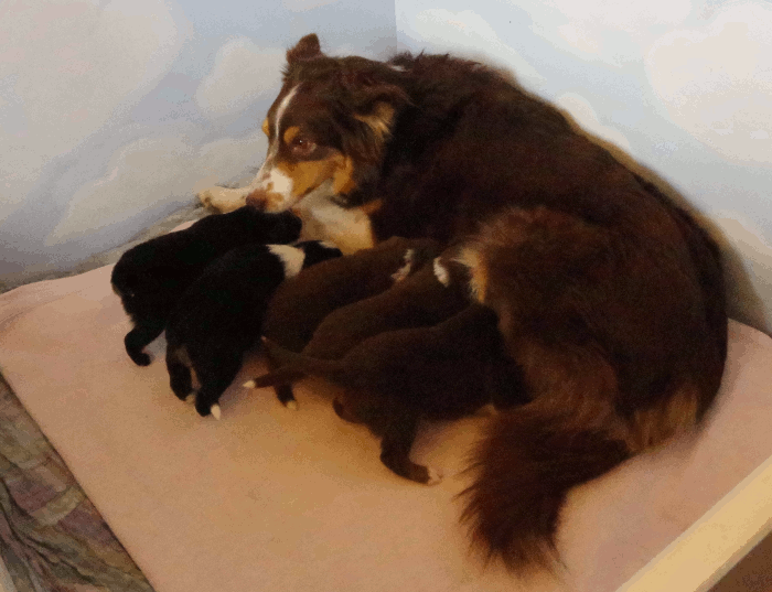 | Bella mit den Welpen: Ace, Alana, Amber und Amy |