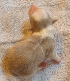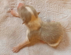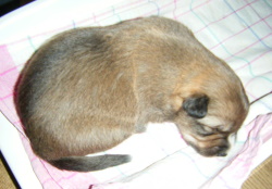 | Tawny - Hündin, 260 gr, zobel heller, kam um 8:10 Uhr zur Welt. |