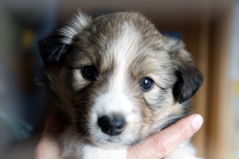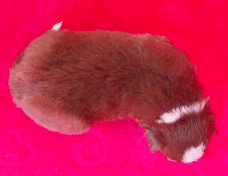 | Shona - Hündin, 310 gr, braun, Blesse geht in Kragen über, Schulter rechts weiß, kam um 10:10 Uhr zur Welt. |