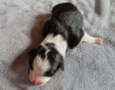 | Xtreme sweet Witch - Hündin, 295 gr, blau-weiß, kam um 6:30 Uhr zur Welt. |
