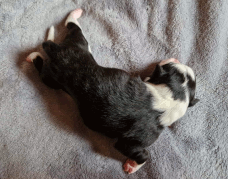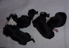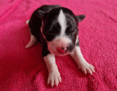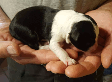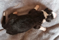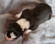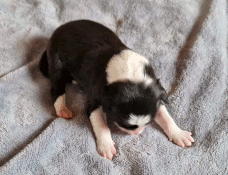 | Sadie - Hündin, 300 gr, schwarz-weiß, wenig weiß, geboren um 15:20 Uhr. |